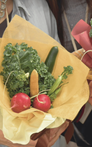色や形の違う野菜を束ねて、食べられるブーケアレンジメントを作ります。施設の農園で収穫された野菜も登場予定?!
